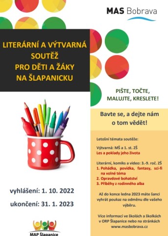 Kdo má chuť si výtvarně či literárně zasoutěžit, může se doma i ve škole zapojit do soutěže MASBOBRAVA. Případné návrhy konzultujte se svými vyučujícími a odevzdávejte do konce ledna 2023.