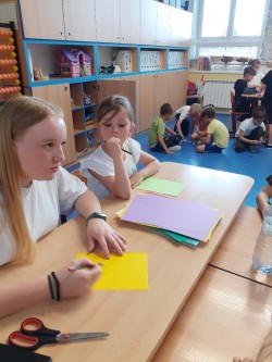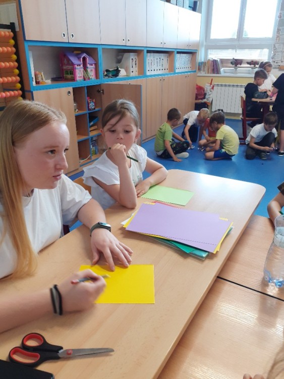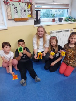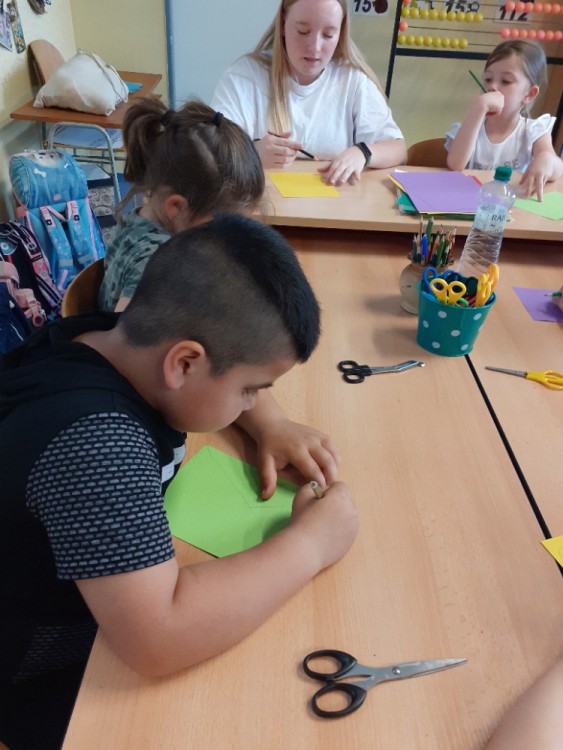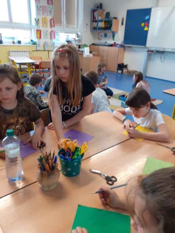 23. 5. 2023 Naši družinu navštívila v rámci své praxe, studentka prvního ročníku I.Německého zemského gymnasia, základní školy a mateřské školy o.p.s., slečna Elena Studená, která s dětmi tvořila barevnou papírovou želvu. 23 / 5 / 2023 SkS