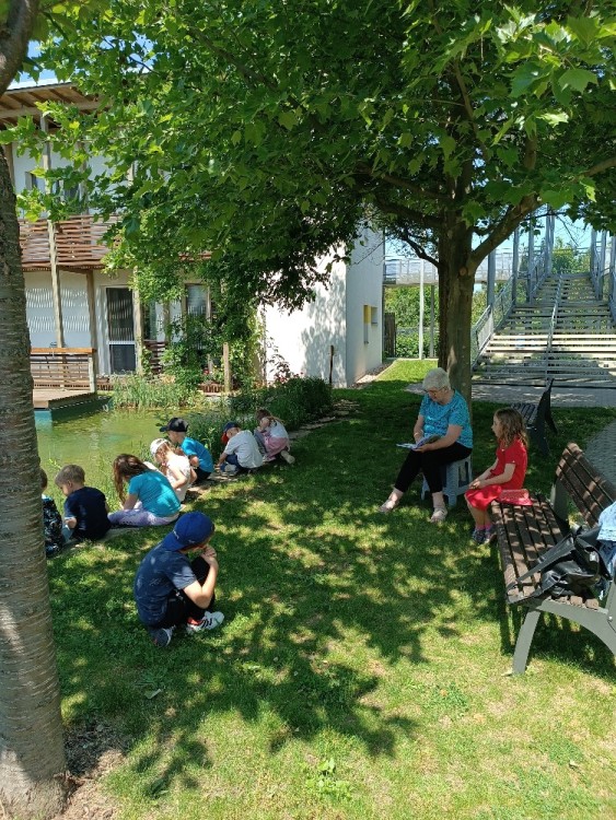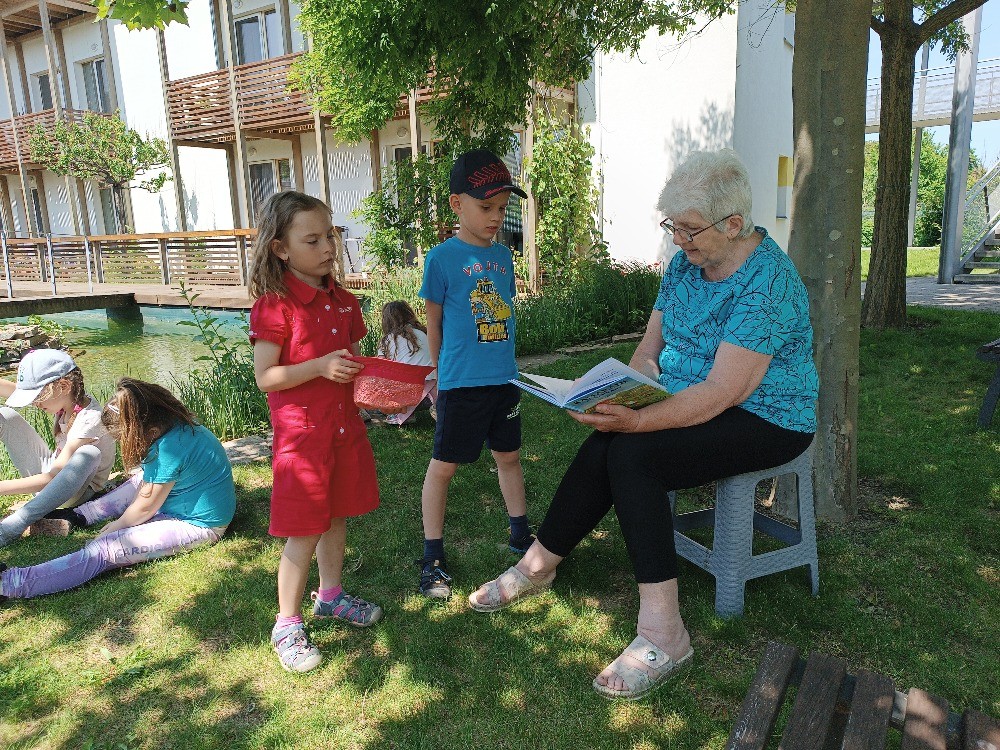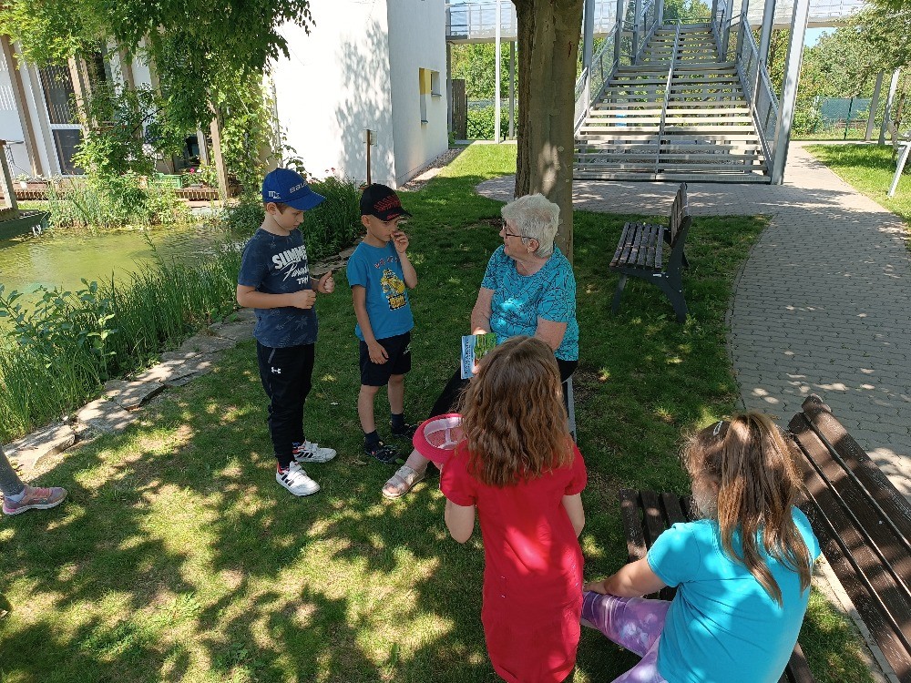 Jako každý rok touto dobou dostaly děti ze ŠD milé pozvání na čtení pohádek od babiček z PBDS Modřice. Pro nultý ročník si připravila pohádku paní Jiřina Rousová. Kromě čtení pohádky Kamarádi ze zahrady od Jiřího Šandery, si paní Rousová připravila i exkurzi po pasivním domě, ukázala dětem rybníček, kde právě sedí kačena na vajíčkách a spojovací krček mezi domy, kde zájemci o ornitologii pozorují ptáky. Velké díky paní Rousové a těšíme se na další návštěvu!