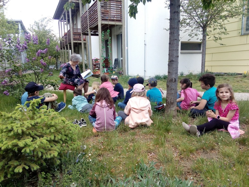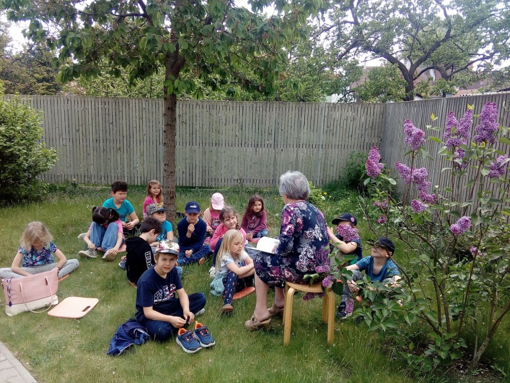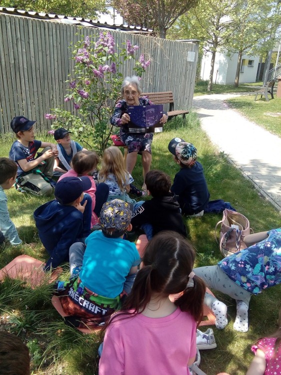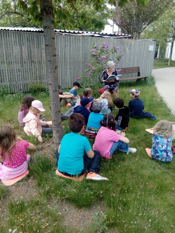 9. 5. 2022 Dnes školní družina navštívila domov seniorů. Paní Marie Brussova nám četla pohádku "O Měsíci " z knihy Kamarádi ze zahrádky od Jiřího Šandery. Čtení proběhlo venku, bylo moc pěkné a budeme se těšit na další pohádky od babiček. 9 / 5 / 2022 KV