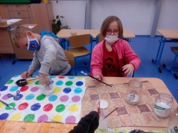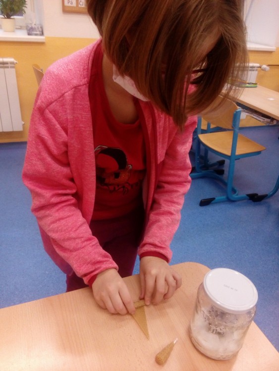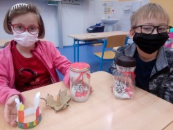 15. 12. 2020 Tvoříme ve školní družině dárečky pro rodiče - točíme svíčku z vosku ke keramické misce - zimní krajinka s dárečky ve skleněné sklenici - ryba z DC 15 / 12 / 2020 KV
