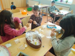 29. 4. 2022 Učíme se plést věnečky z pampelišek. Na Plácku si hrajeme s bublifukem, malou kopanou a vybíjenou. Tvoříme náramky a náhrdelníky z korálků. 29 / 4 / 2022 BJ