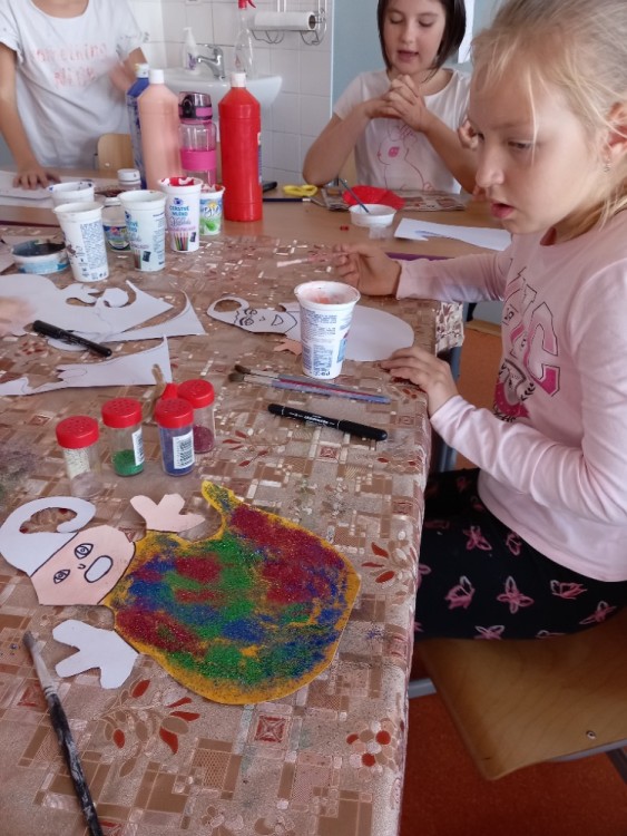 31. 10. 2022 Koncem října jsme se pustili do tvoření duchů. Obkreslili jsme duchy podle šablony, vystřihli je, vymalovali temperovými barvami a dozdobili třpytkami. Práce nás moc bavila. Duchové nám dělají radost jako dekorace v dětských pokojích. 31 / 10 / 2022 BJ