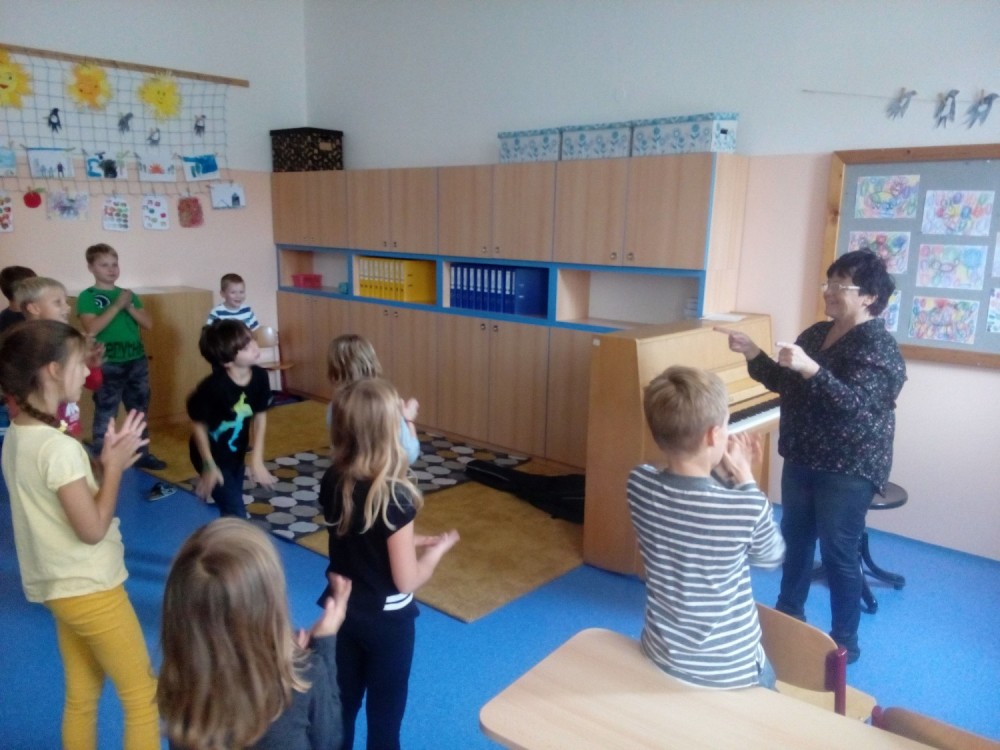 V pondělí se konalo ve 2.oddělení setkání s odborníkem na hudbu paní Jitkou Kafkovou. Žáci v doprovodu klavíru, kytary i flétny společně s paní Kafkovou a vychovatelkou K. Veselou zpívali známé písničky. Pomocí vytleskávání jsme se rytmicky doprovodili u některých písní. Jiné písně jsme zvládli i zdramatizovat, pohyb se žákům líbil.