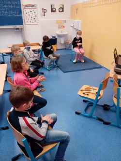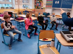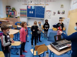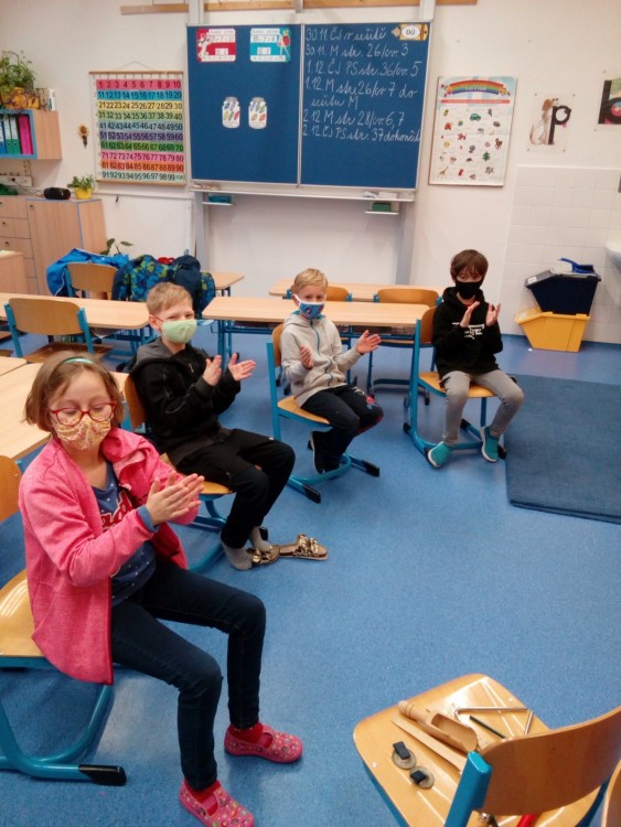 Čtvrté setkání bylo dle pravidel a hygienických předpisů s rozestupem i rouškou. Opakujeme známé písničky, říkáme slova, zahrané na klávesy paní Kafkovou. Většinu připravených melodií hravě poznáváme. Melodie dupeme, tleskáme, luskáme prsty, vše se někdy povede propojit. Máme rádi rytmizaci s Orffovy nástroji (bubínek, kastaněty, zvučná dřívka, triangl, štěrchadlo) i když některé názvy nástrojů si stále nepamatujeme. Budeme se těšit se na setkání v lednu.