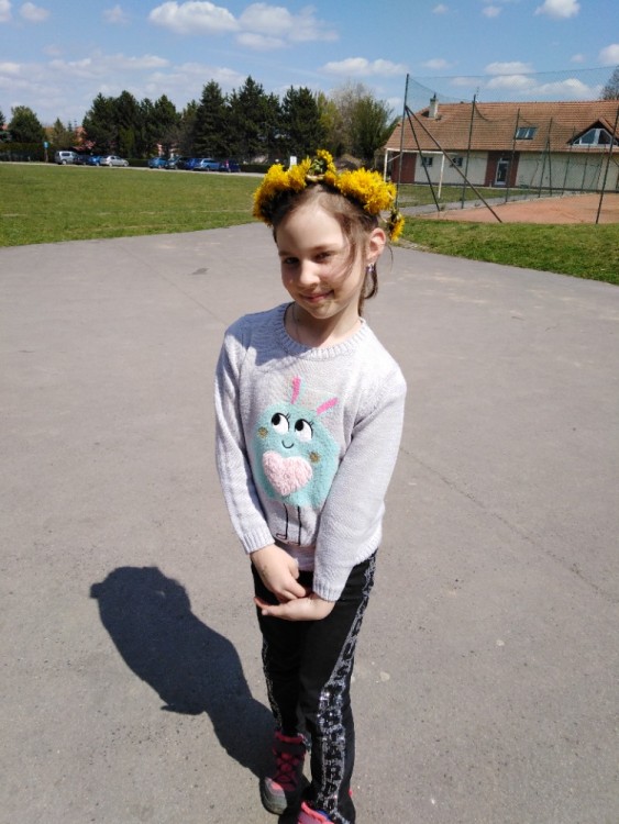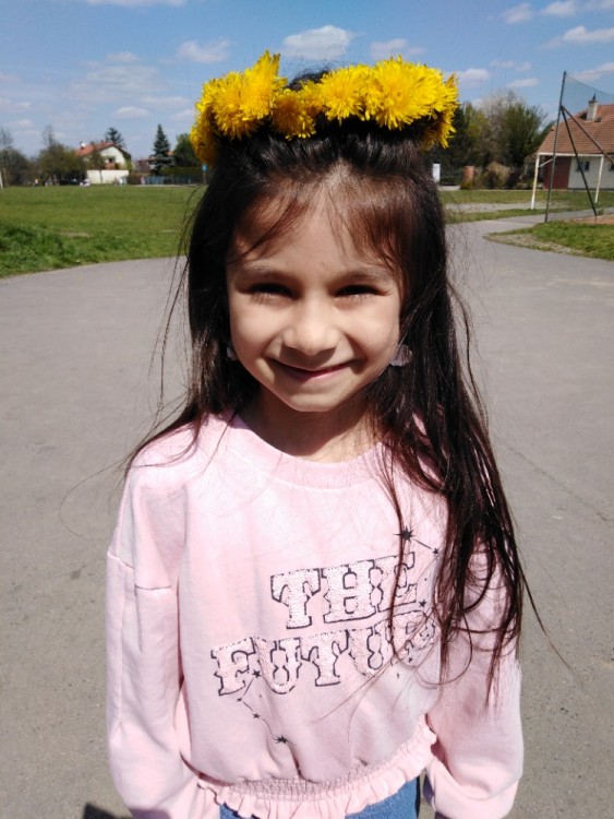 věneček z pampelišek nebo-li smetánky lékařské a chlapci si zatím pohráli na vojáky.