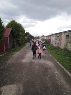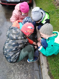 protáhneme se. S předškoláky jsme sledovali "duhu" v loužích, učily jsme se s děvčaty plést