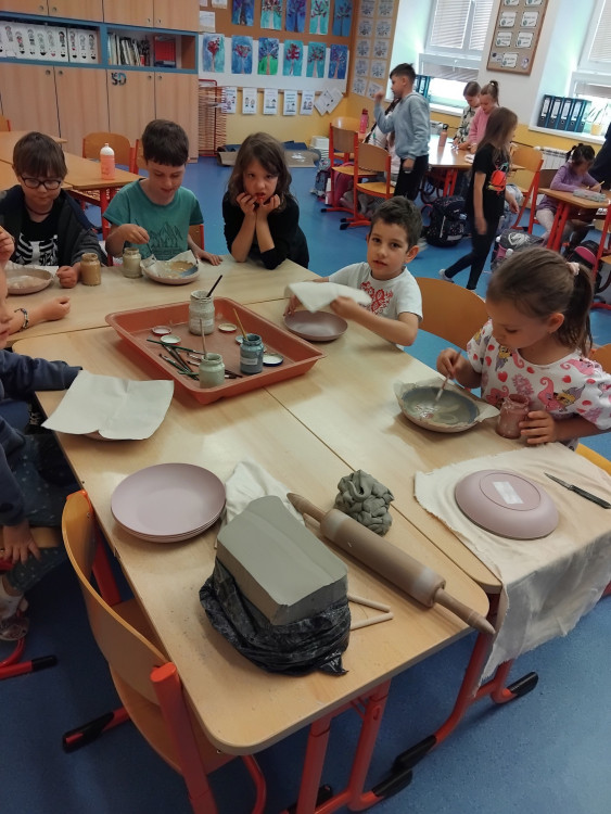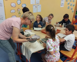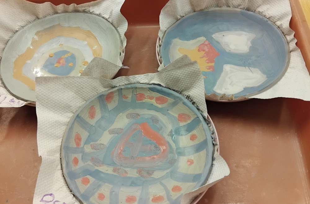 Keramický talířek zdobený engobou - 2.oddělení ŠD