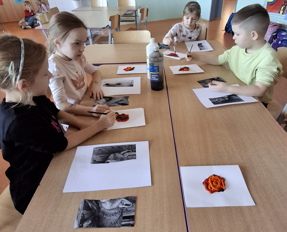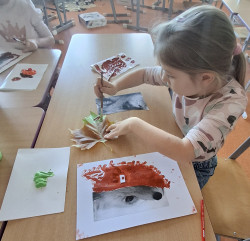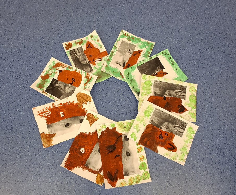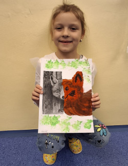 Liška Bystrouška od autora Rudolfa Těsnohlídka byla tématem našeho tvoření. Dětem jsem nalepila na tvrdý karton polovinu fotografie lišky, druhou část děti dokreslili temperovými barvami🙂.
