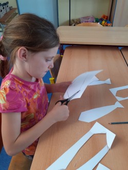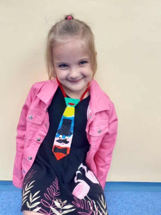 18.6. je Den otců. S dětmi jsme tvořili kravatu pro tatínky. Podle šablony jsme vystřihli tvar kravaty, vybarvili temperovými barvami, doplnily klobouk, knírek, motýlka a nalepili oči. Hotovou kravatu jsme zalaminovali, děrovačkou udělali dvě dírky, kterými jsme protáhli chlupatý drátek na zavázání. :😊