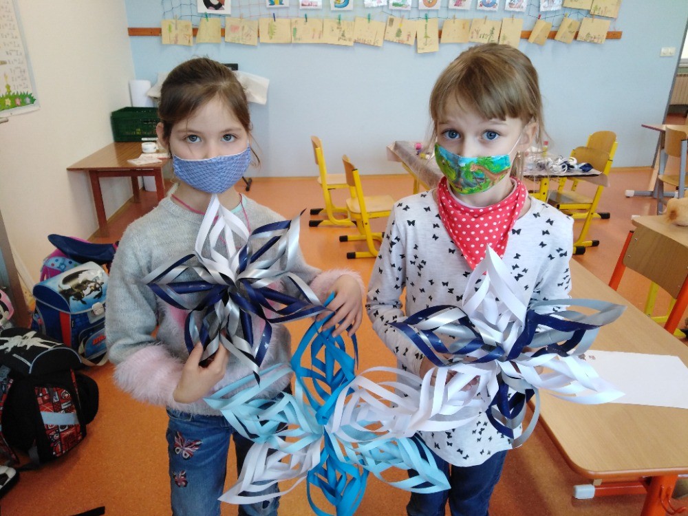 ledovému tvoření. Procvičovali jsme stříhání na sněhulácích, použili jsme