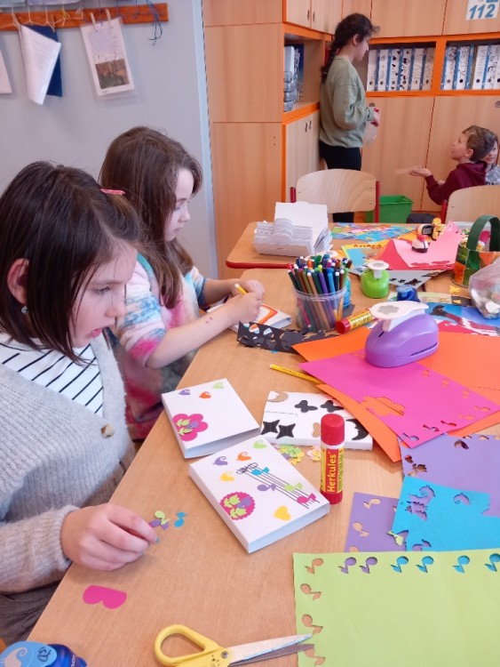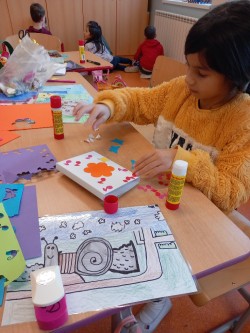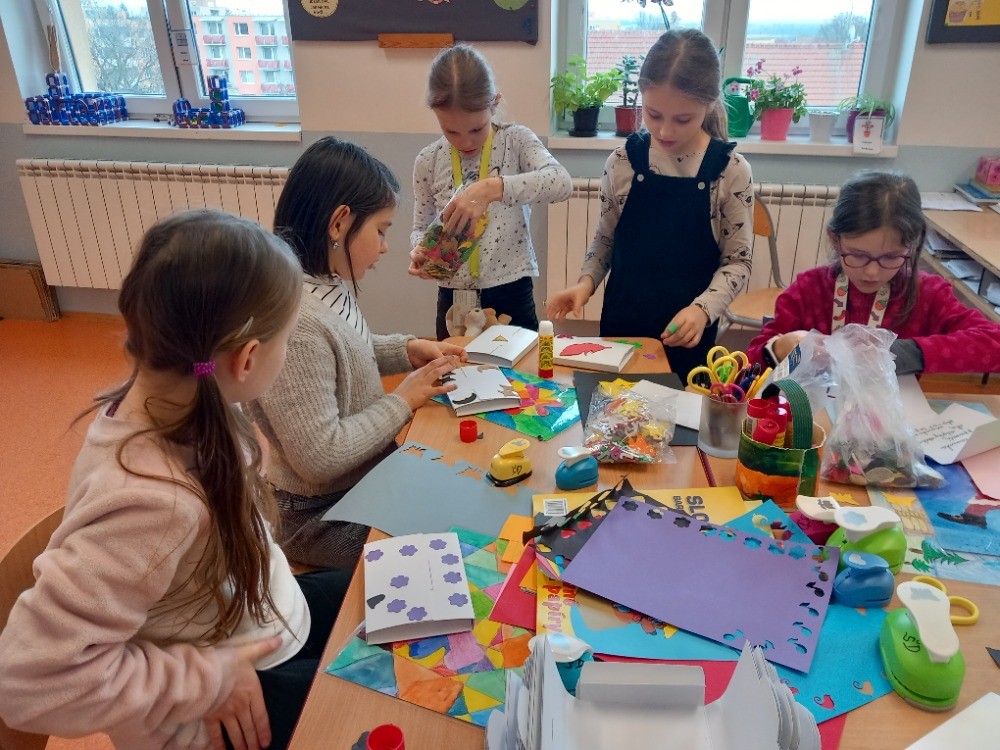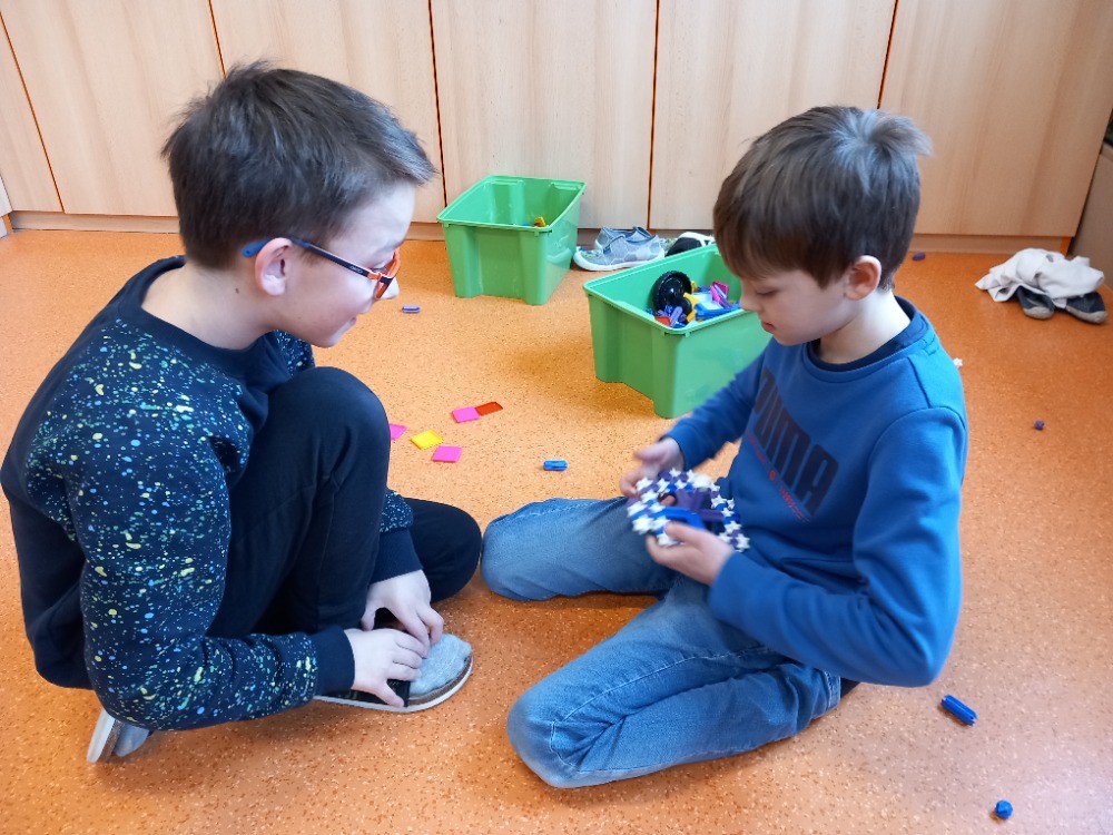 6. 2. 2023 Zdobíme bílé krabičky z kartonů barevným papírem a učíme se pracovat s raznicemi. Stavíme si z Lega a ze Sevy hračku "Káču", s níž pořádáme mezi sebou závody. 6 / 2 / 2023 BJ