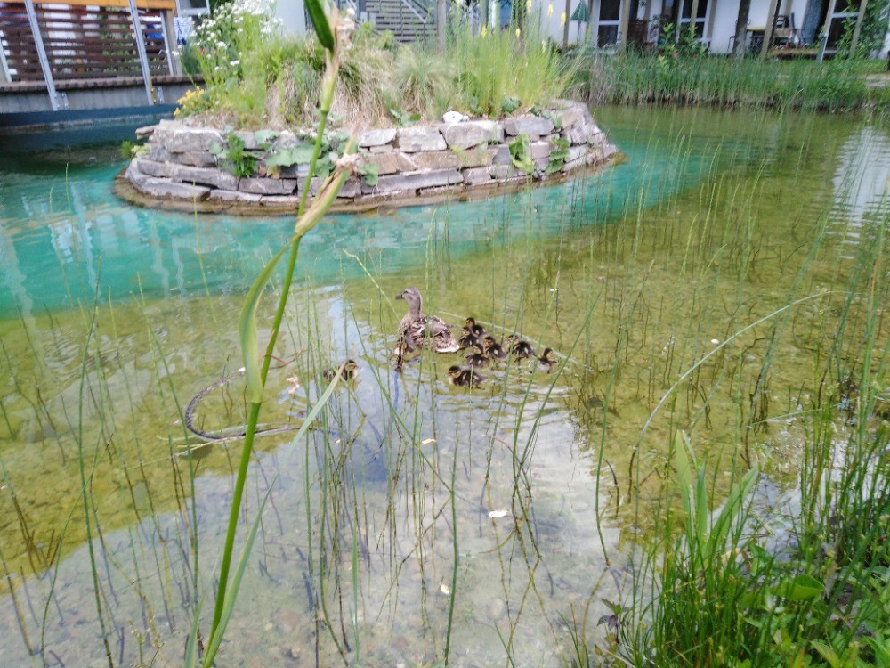 vylíhnutých káčat kachny divoké, která k jezírku přilétla, aby tady vyseděla mladé.