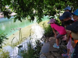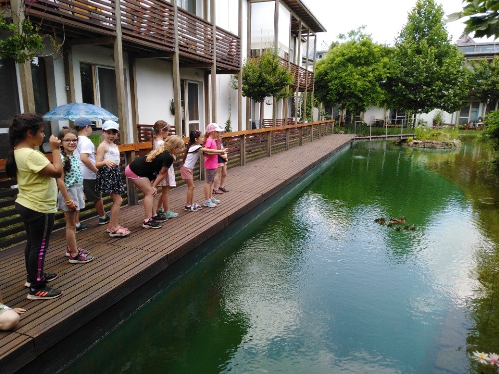 Druhý den poté kachna s káčaty doslova odpochodovala k místními rybníku.