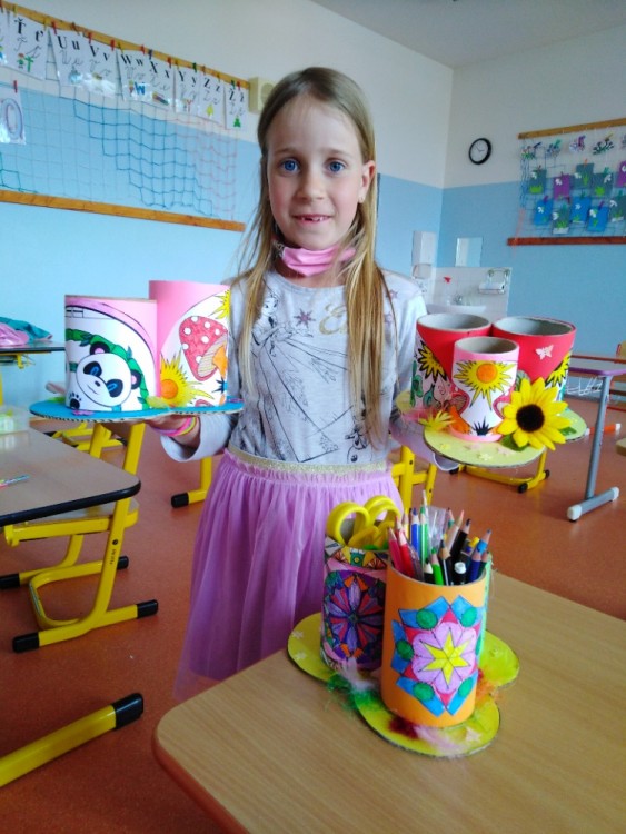 hráli vybíjenou a stříleli na branku. Ve třídě jsme si vytvořili praktické stojany