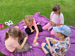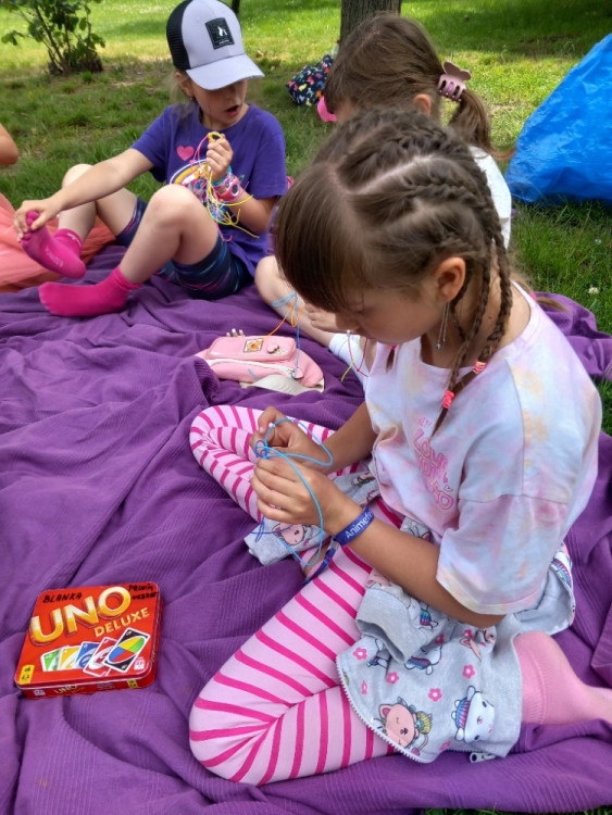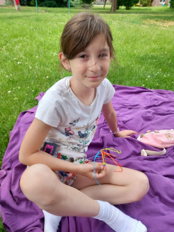 Ke konci školního roku tradičně pleteme přívěsky na klíče z bužírek. Pleteme dvojím způsobem, ze dvou provázků nebo ze čtyř. Učíme se jeden od druhého. Spolu si užíváme poslední chvíle ve škole a ve družině. Těšíme se na školu v přírodě a na velké prázdniny. Cestou z obědu jsme se zastavili v PBDS na výstavě fotografií klobouků.