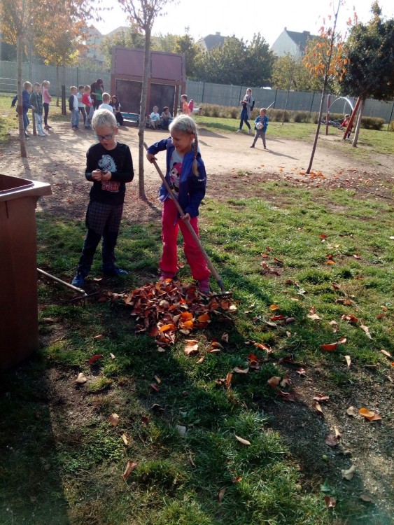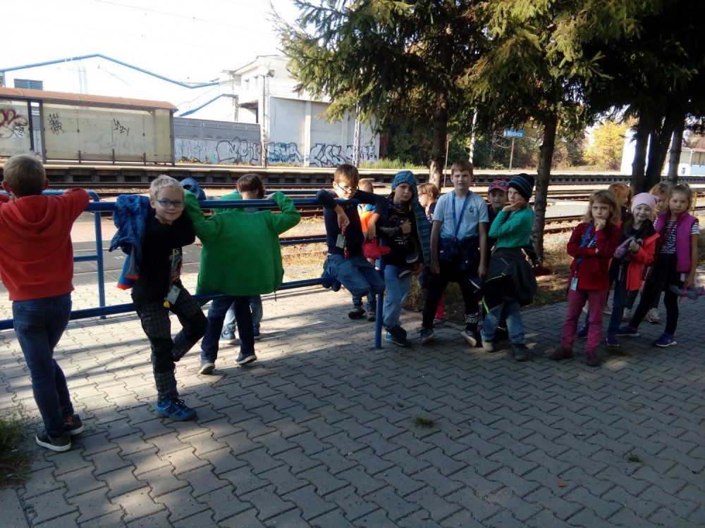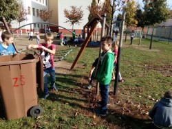 24. 10. 2019 podzimní práce na školním hřišti, návštěva nádraží, opakujeme kam patří různý odpad, procházka městem 24 / 10 / 2019 KV