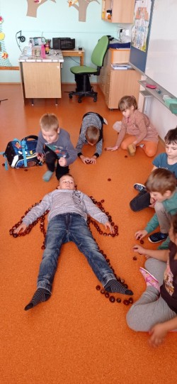 Podzim jsme trávili na školní zahradě a dětských hřištích. Když nám nepřálo počasí, zabavili jsme se ve třídě tvořením nebo hraním her.