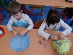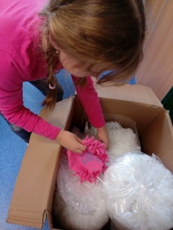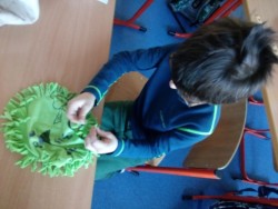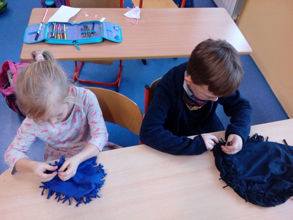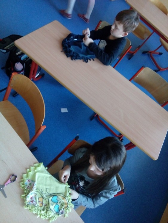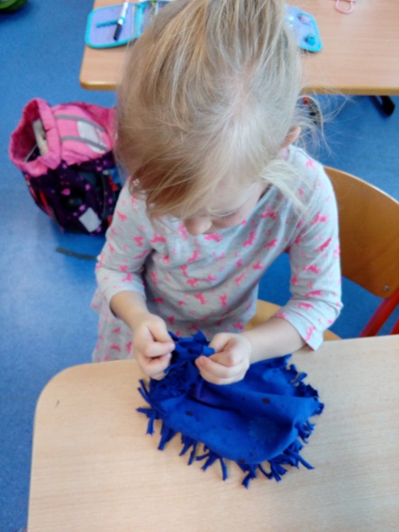 2.oddělení ŠD - recyklujeme tričko - polštářek bez šití, dělat uzlíky je někdy velký ?