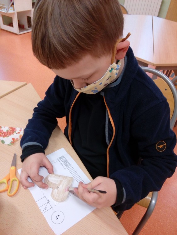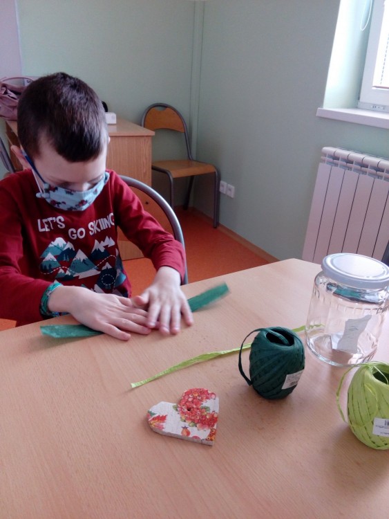5. 2. 2021 Předškoláci tvoří zdobenou sklenici. Vyřezáváme balsové srdíčko, kašírujeme barevné ubrousky, zdobíme sklenici. 7 / 2 / 2021 KV