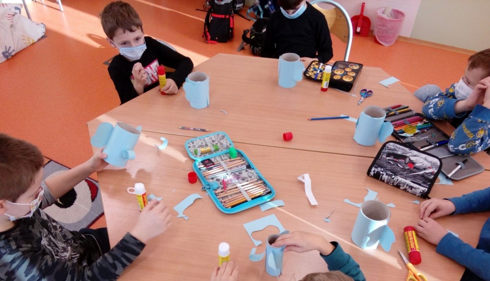 27. 1. 2021 Poslední týden v lednu se nám podařilo vyrobit pěkné výtvarné výrobky. - zasněžená krajina - barevný papír, lepidlo, tempera - zvířátka z papírové ruličky veverka, slon 27 / 1 / 2021 KV