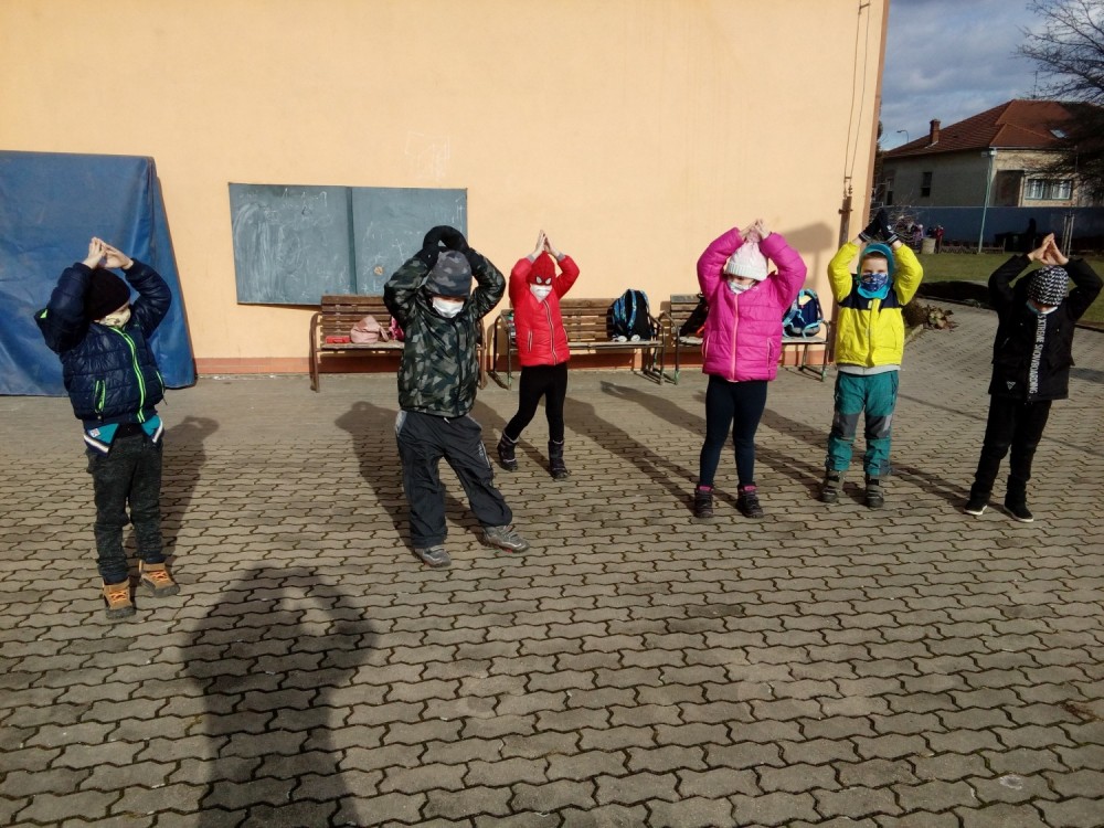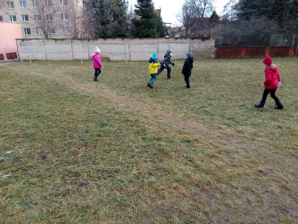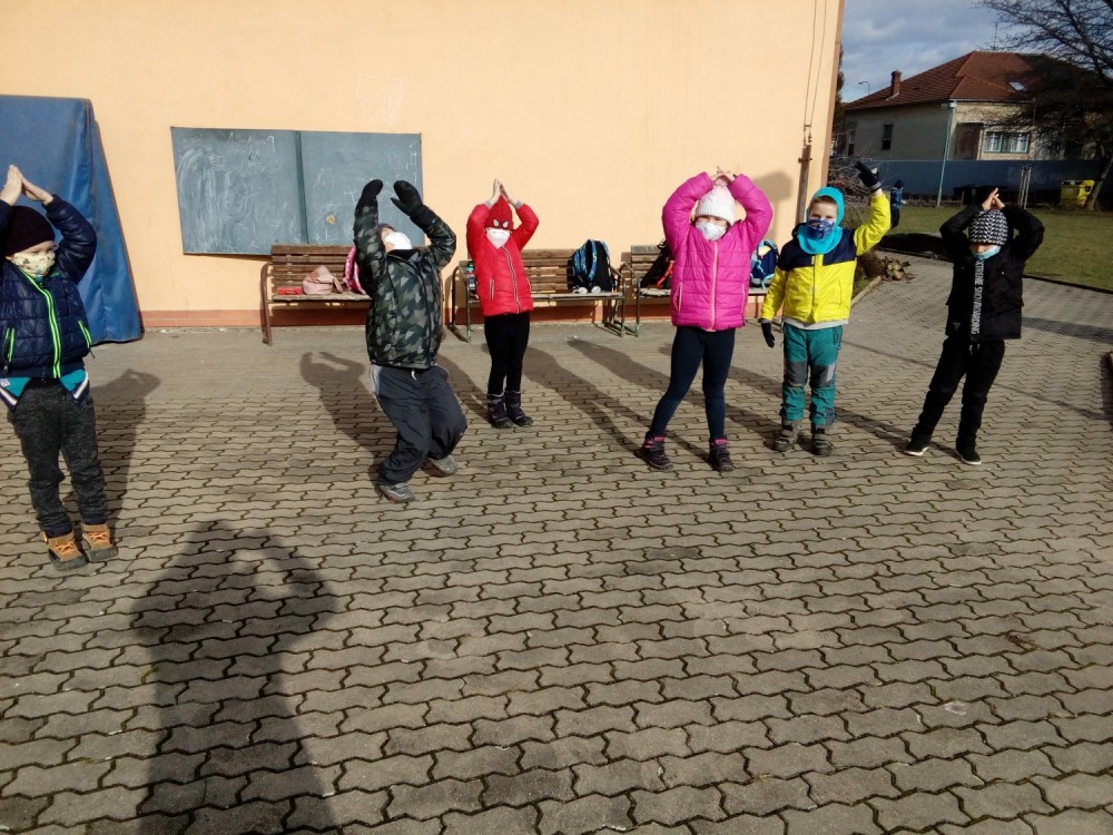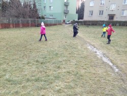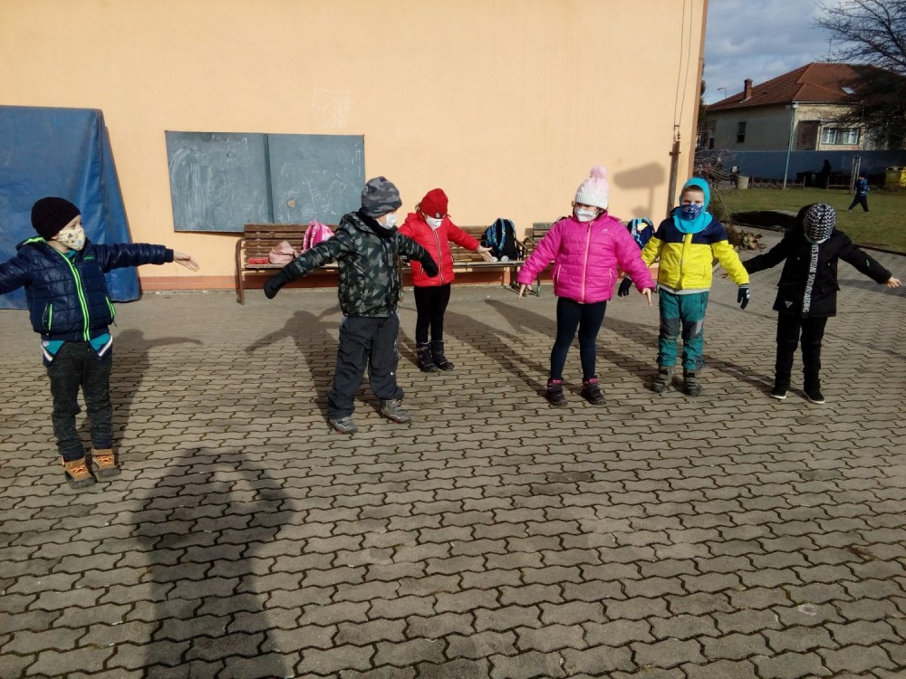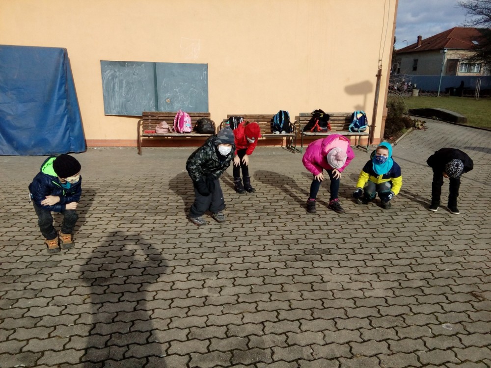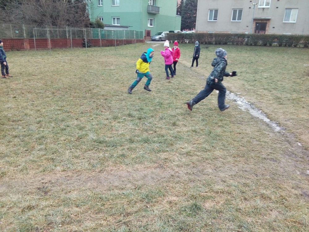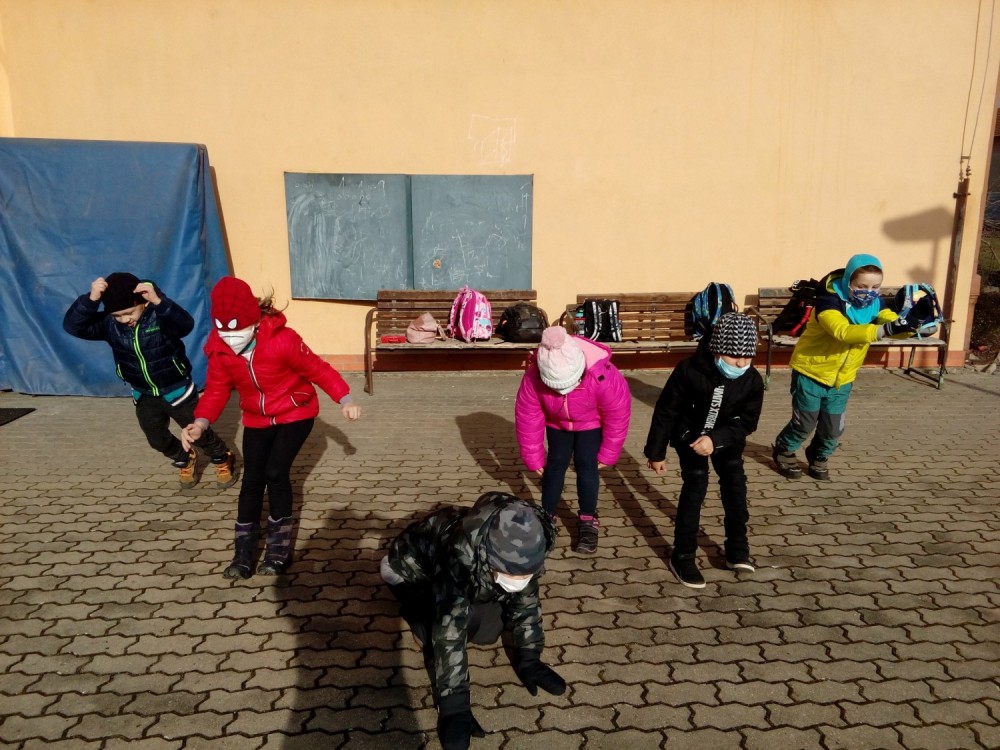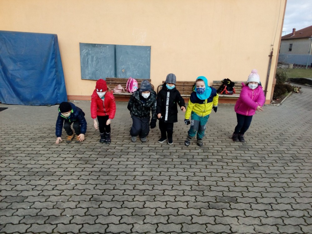 26. 1. 2021 ŠD Přípravná třída - po odpočinu, hrajeme pohybovou hru na opakování - před školou hra Domeček, hříbeček, skok žabáka - na hřišti bez herních prvků v lednu na zamrzlíka 26 / 1 / 2021 KV