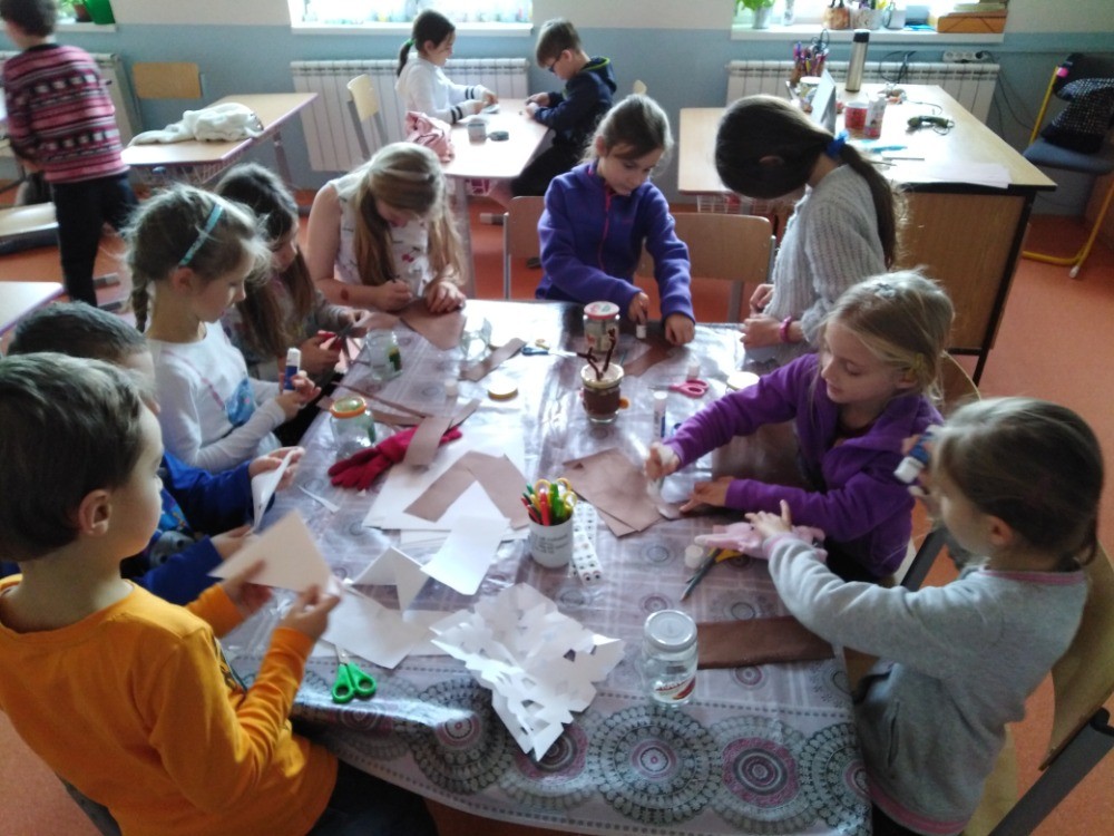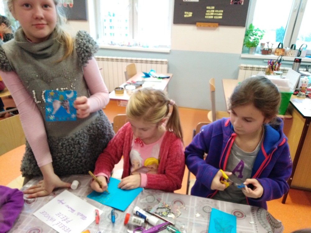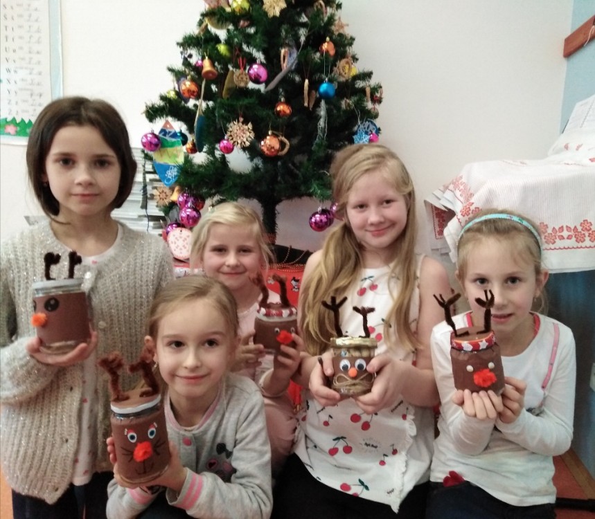 Tvořili jsme vánoční přání pro rodiče a soby ze skleniček, a přitom poslouchali písničky z Youtube.