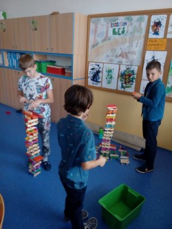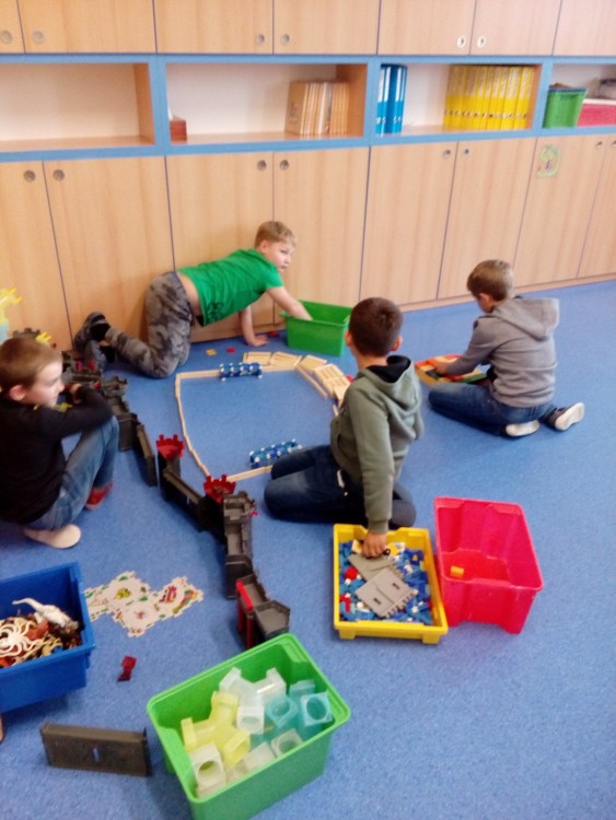 25. 9. 2019 Skládání dřevěných kostek, divalo o zvířátkách ze stavebnice, šroubované auta, míčové hry, skok z místa 3 / 10 / 2019 KV