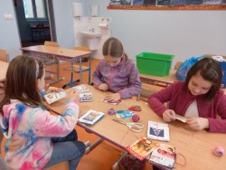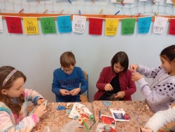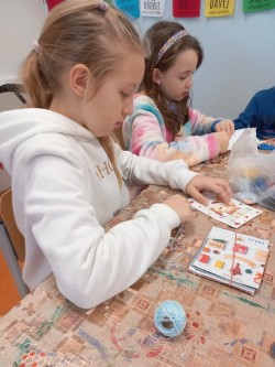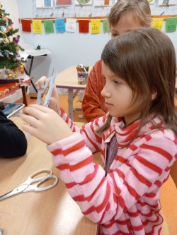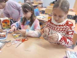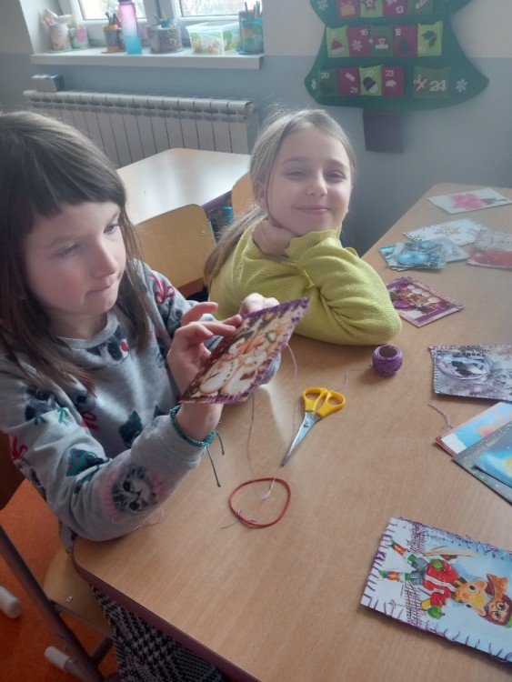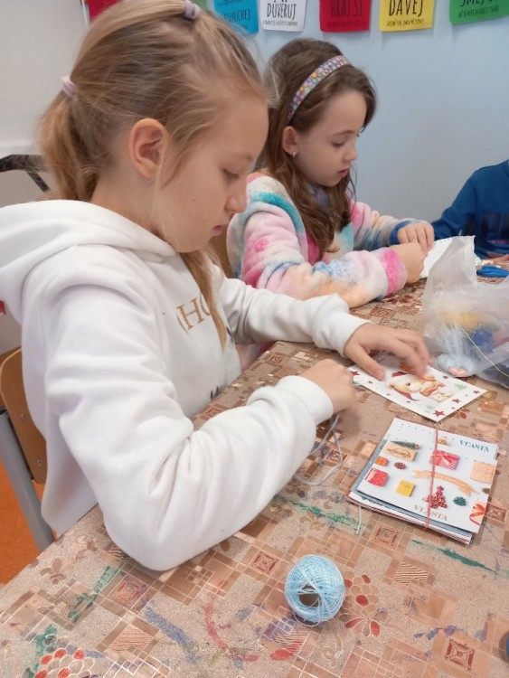 Poslední týden před svátky jsme se pustili do ručního šití krabiček z pohlednic. Naučili jsme navlékat niť, dělat uzlíky a šít ozdobným zahrádkovým stehem. V práci budeme pokračovat v novém roce, kdy budeme pohlednice k sobě sešívat. Ruční šití nás baví a těšíme se na další tvoření.