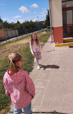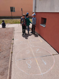 Skákání panáka je dětská hra. Úkolem je skákat přes políčka v daném pořadí bez přešlapu.
