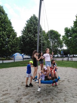 na hřišti podle připravených vět pantomimou předváděli různé situace