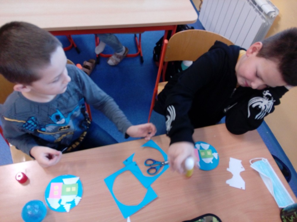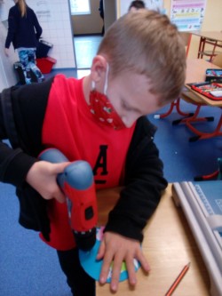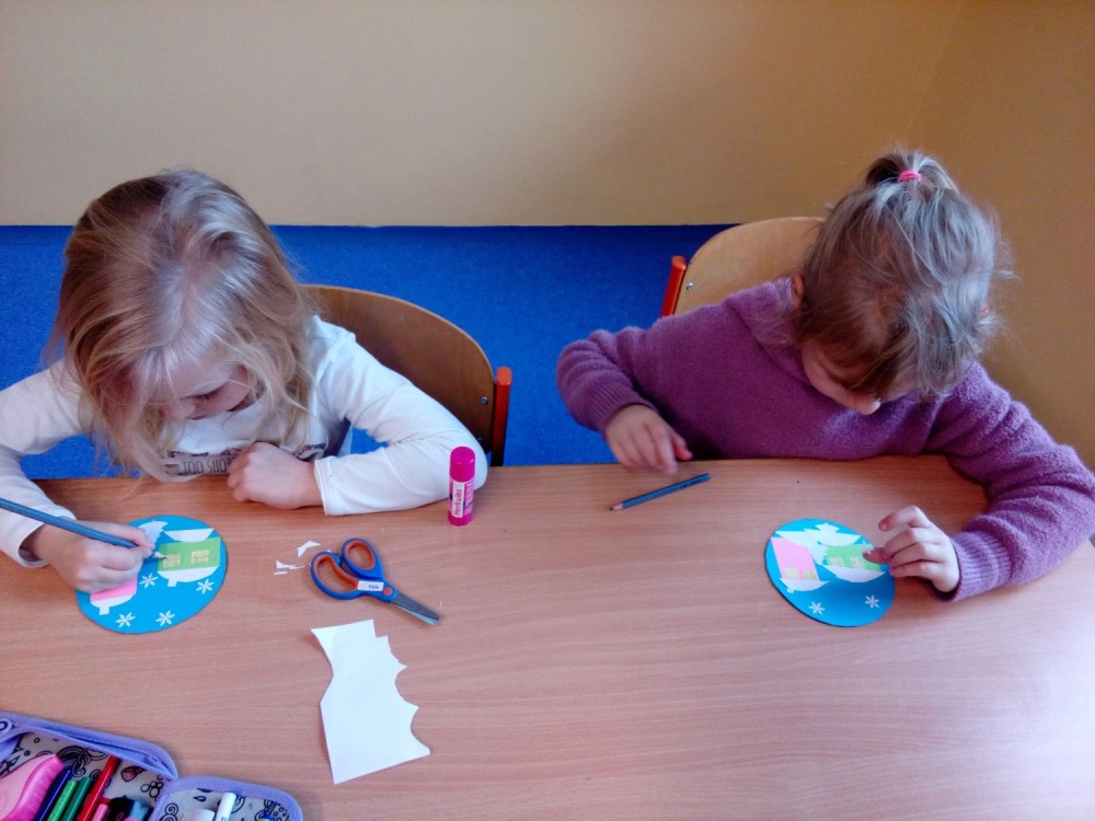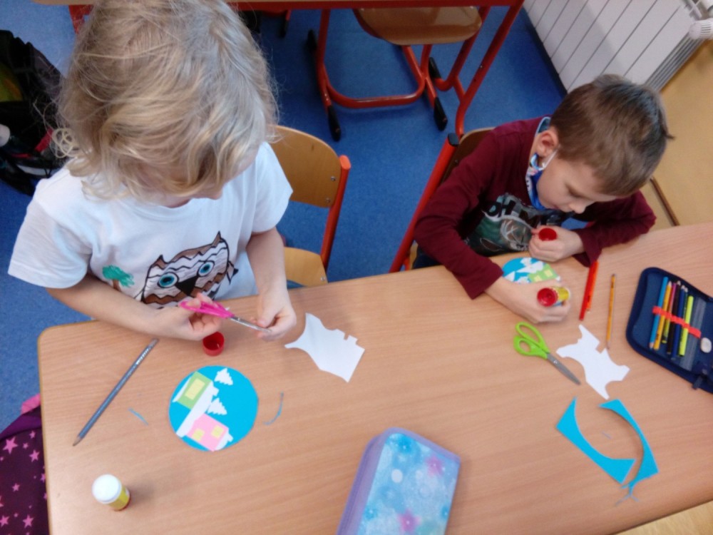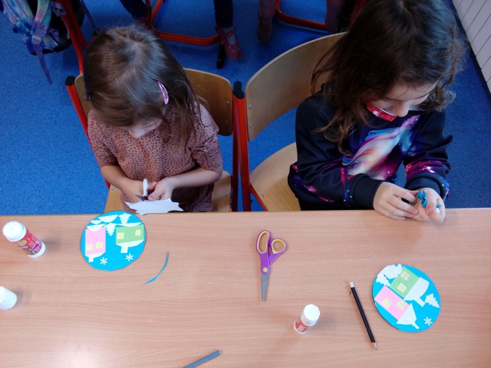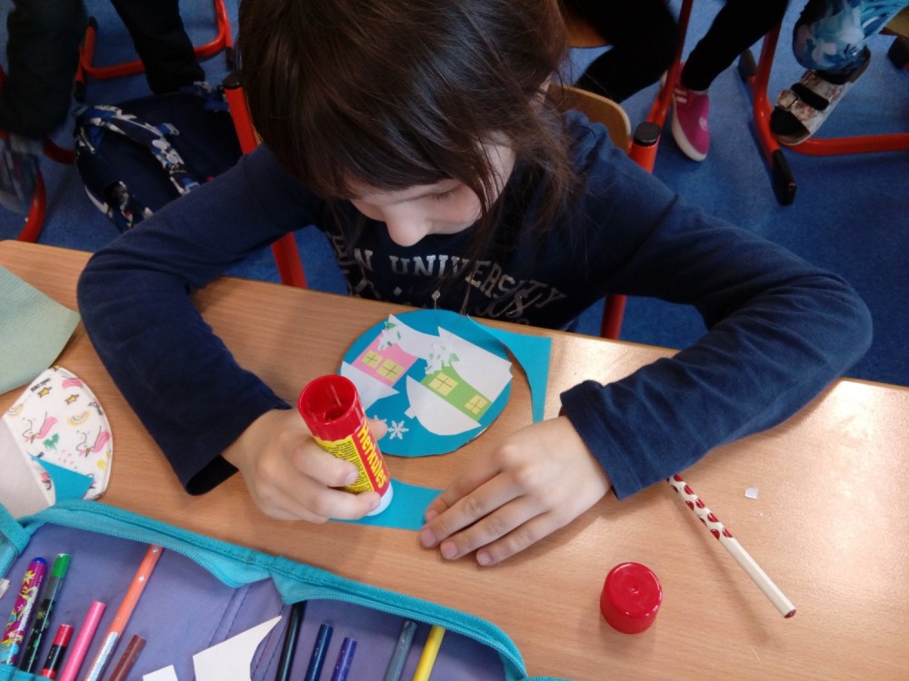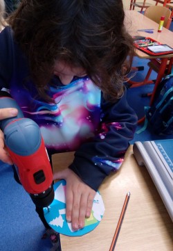 Výroba zimní krajinky na CD, vrtáme si dírku na pověšení.