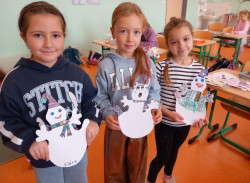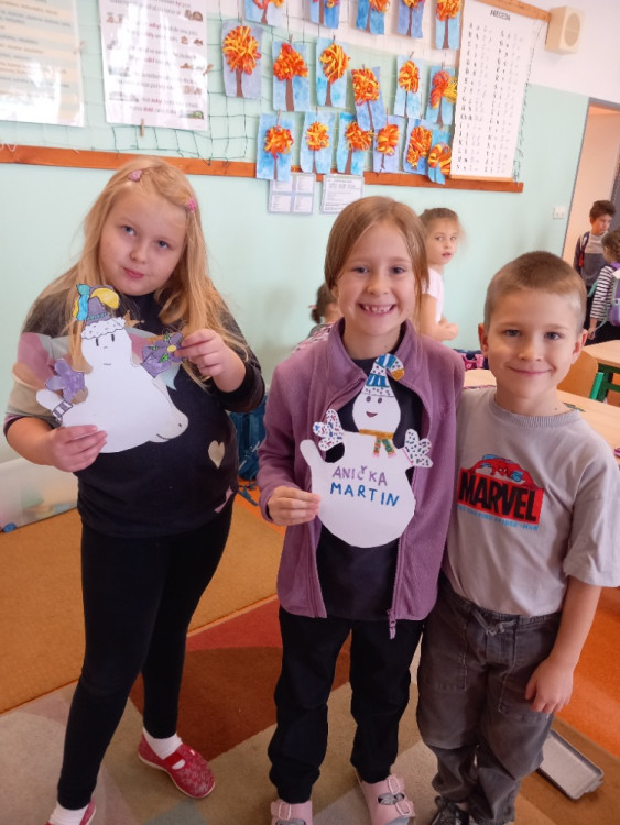 V ranní družině tvoříme z bílého kartonu strašidla a sněhuláky. Tvoření nás opět velmi bavilo a dařilo se nám.