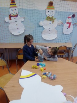 17. 2. 2019 Malujeme plakáty sněhuláků, aby těm z loňska nebylo smutno. Podle ledových obrazců vytvořených na jezírku u babiček kouzlíme tavnou pistolí a temperovými barvami naše krásné ledové obrazy. Moc se nám povedly! Jako i plakát tučňáků :-) 17 / 2 / 2019 BJ