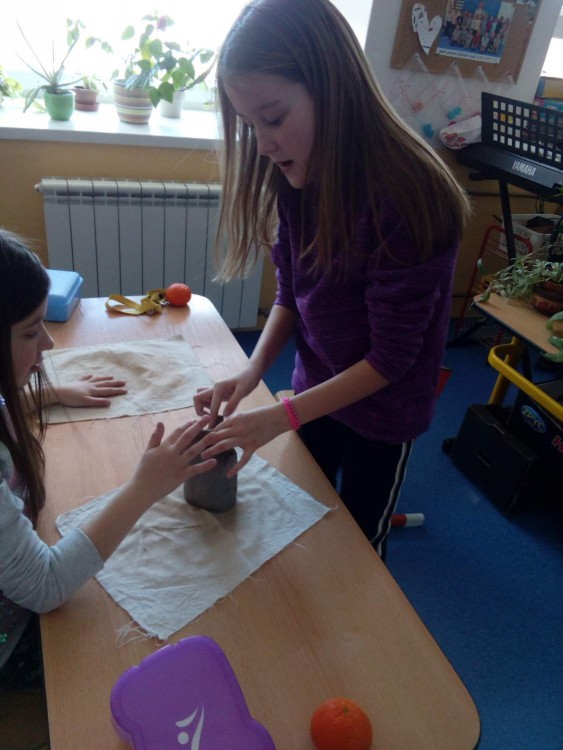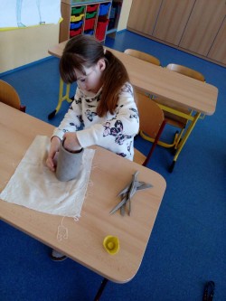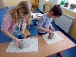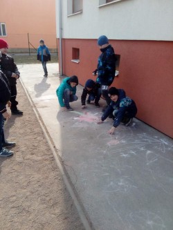 22. 2. 2019 2.oddělení - těší nás pěkné počasí, malujeme na chodník před školou - práce s keramickou hlínou, stojánek na tužky 23 / 2 / 2019 KV