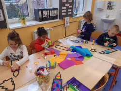 Jelikož se blíží Vánoce, tak jsme se rozhodli, že je nejvyšší čas začít pracovat na výzdobě třídy. Advent je tu, a tak jsme tematicky začali s tvorbou svíček a drobných ozdob. Při tvoření jsme si vyzkoušeli práci s hedvábným papírem a procvičili jemnou motoriku prací s nůžkami.