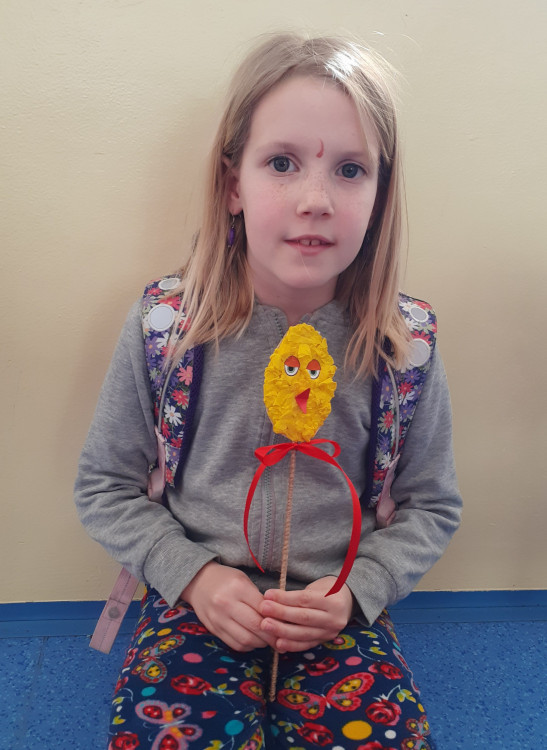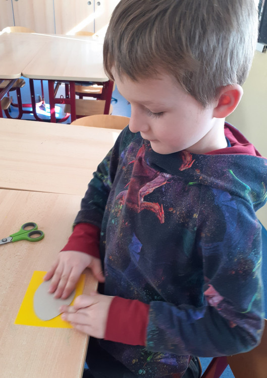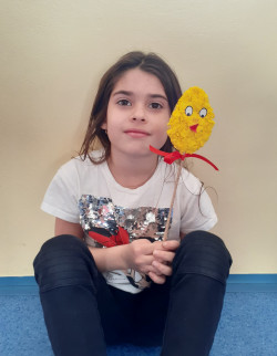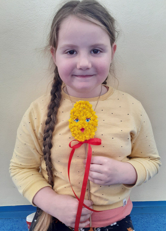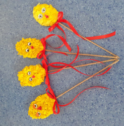 Další výrobek ve tvaru kuřátka jsme tvořili již společně. Vyrobili jsme jej jako zápich, který vynikne v každém květináči🙂.