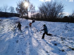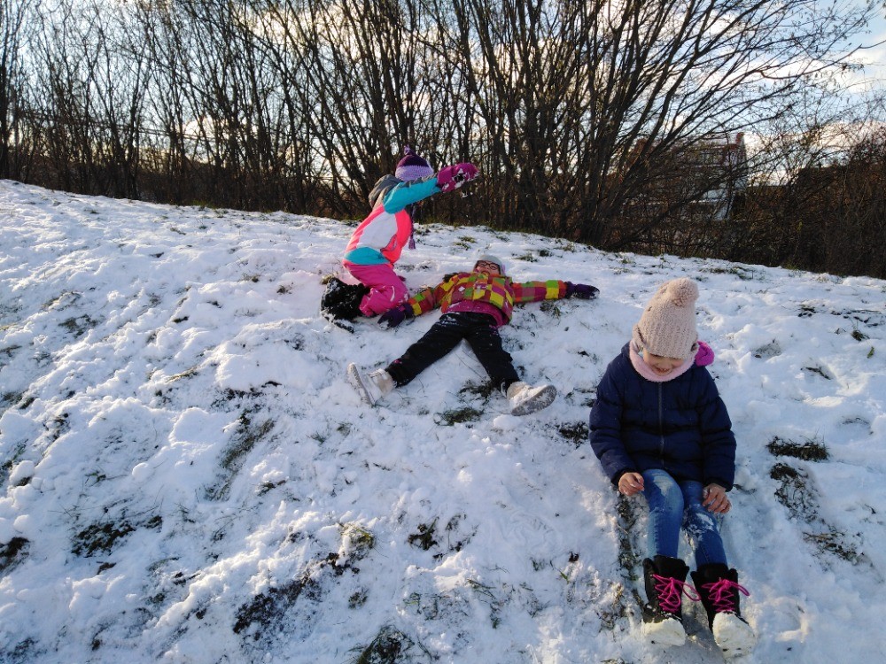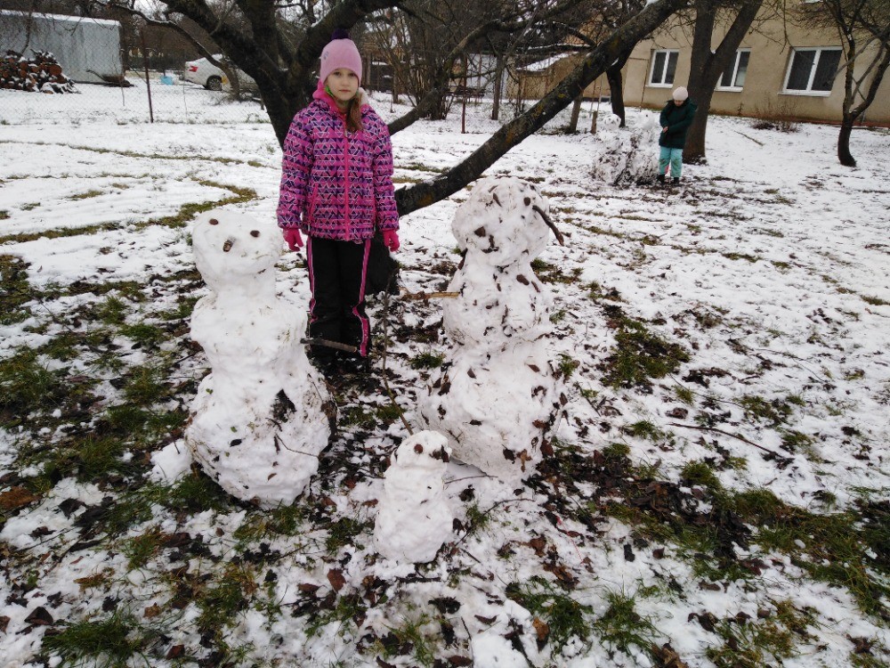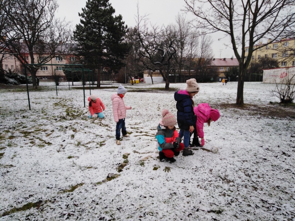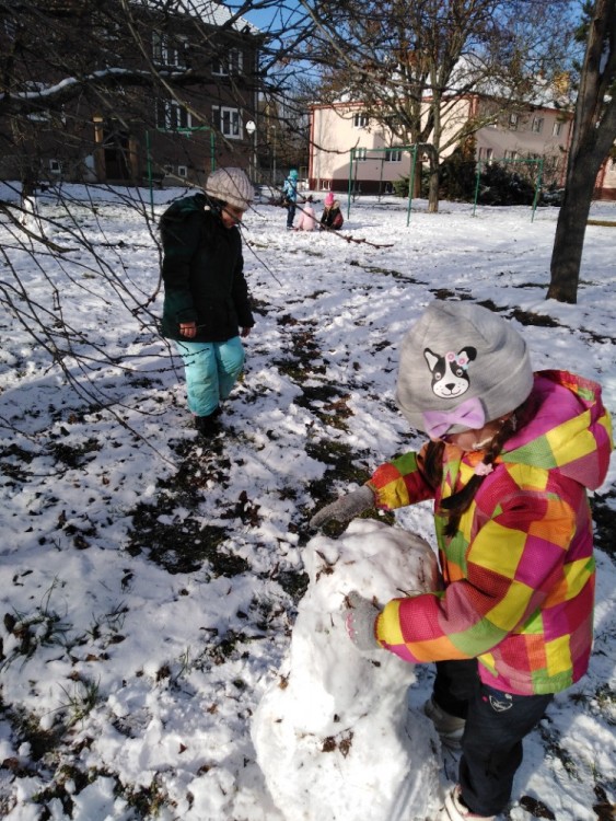 si tak sněhu plnými doušky, stavíme sněhuláky a jejich rodiny, koulujeme se
