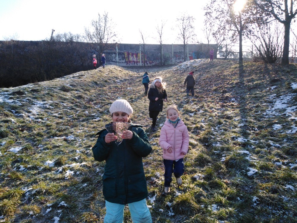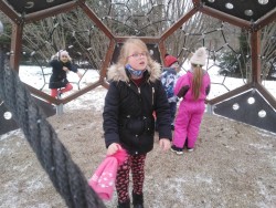 Celý leden chodíme pravideně na procházky na oblíbený Plácek a hřistě Fino.