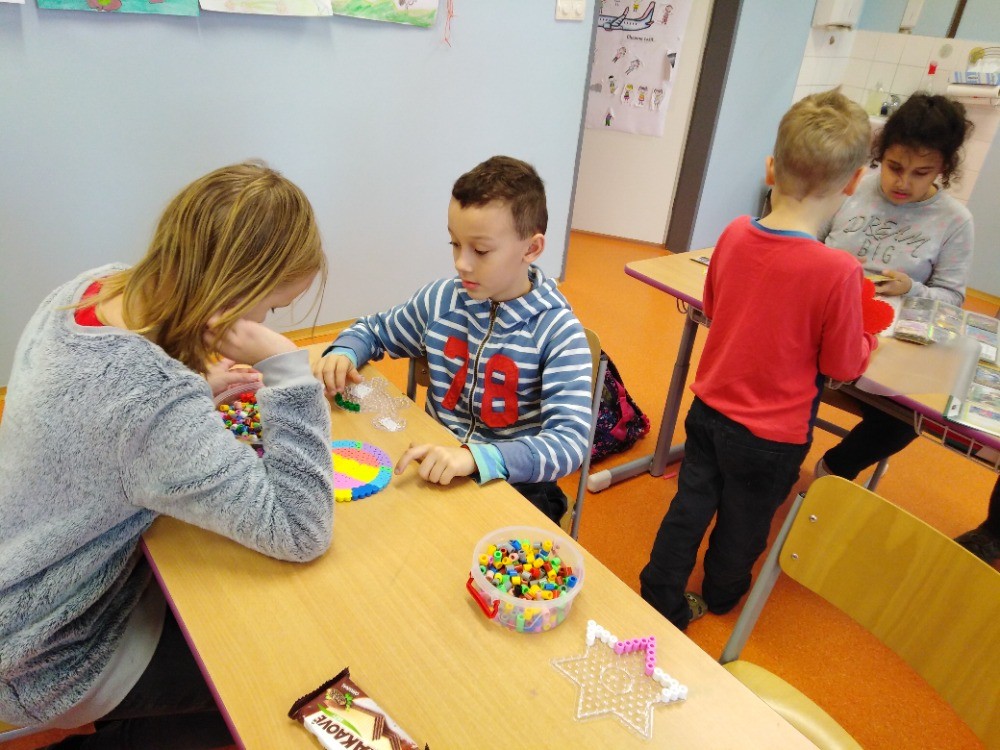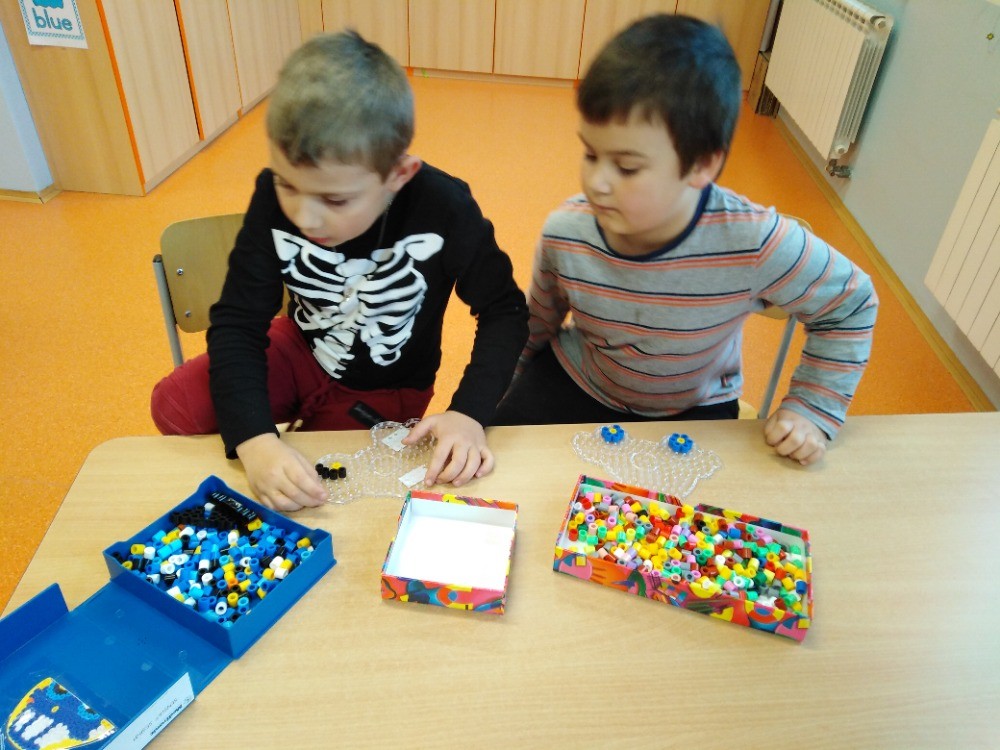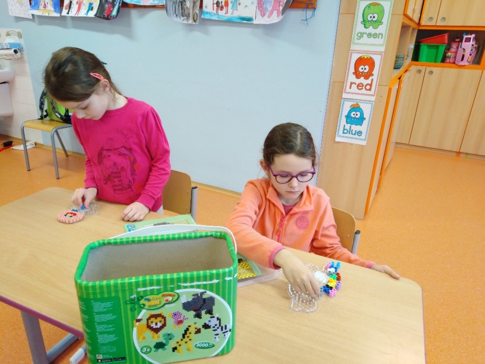 Práce s korálky nás vždycky bavila. Ve výtvarných potřebách naší družiny jsme objevili