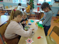 MAXI korálky. Ježíšek nám k nim donesl podložky a další boxík s korálky. Tvoření nám
