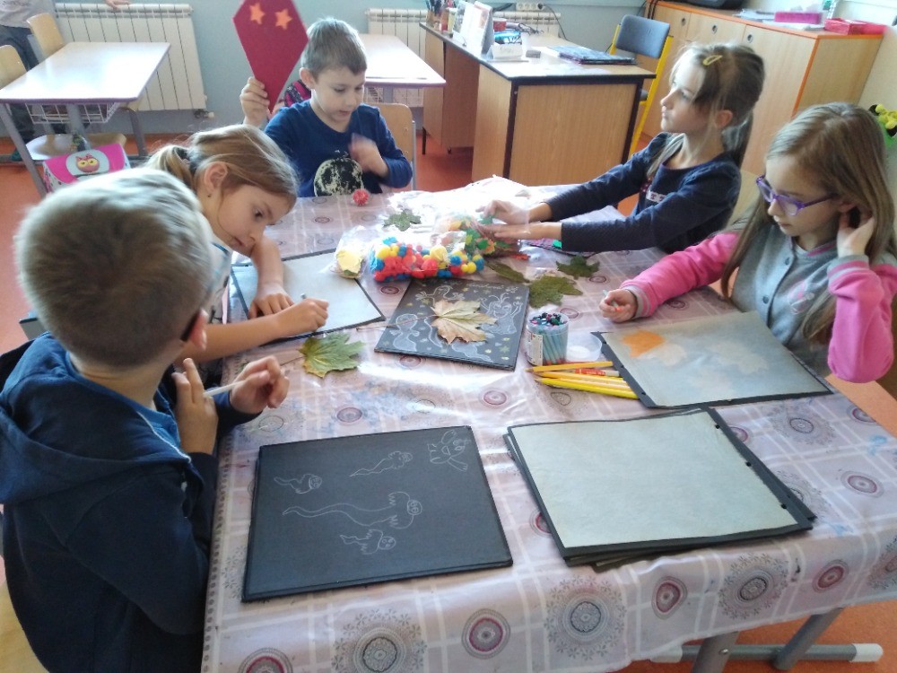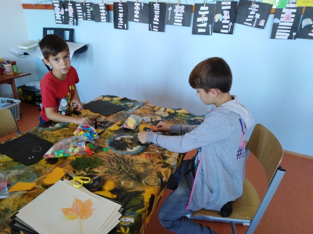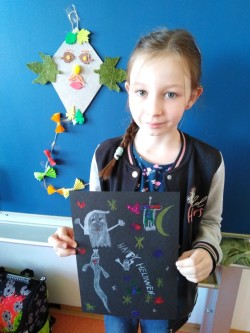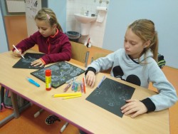 zkusili jsme je bílou pastelkou nakreslit. Výkresy jsme dozdobili