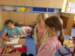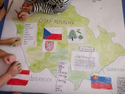 V rámci projektu Den evropských jazyků jsme si povídali o České republice a našich sousedech.Zjišťovali jsme, jak se v jejich jazycích říkají a píšou slova jako stát, země, hlavní město, hymna či vlajka .Poslechli jsme si hymny těchto států a nakreslili vlajky.Vytvořili jsme si společně plakát a nakonec se podívali na ukázky pohádek ve slovenštině, polštině a němčině.