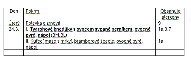 Dobrý den, z organizačních důvodů došlo dne 24.3. ke změně jídelníčku. Děkujeme za pochopení, vedoucí školní jídelny 23 / 3 / 2026 EG