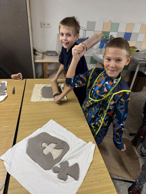 Jako každý rok se nám i letos podařilo zařadit do školních aktivit keramiku. Dalším výrobkem byl andílek a keramické ozdoby na školní jarmark. Moc se těšíme, jak se budou zákazníkům líbit, jelikož jsme se rozhodli si otevřít prodejní stánek a zkusit si matematiku v praxi.