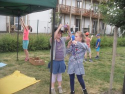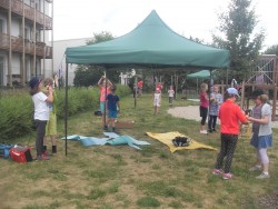 10. 6. 2017 Na školní zahradě máme stín. Děkujeme SRPŠ za dva stany, dobře se zde odpočívá. 10 / 6 / 2017 KV