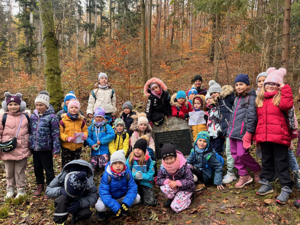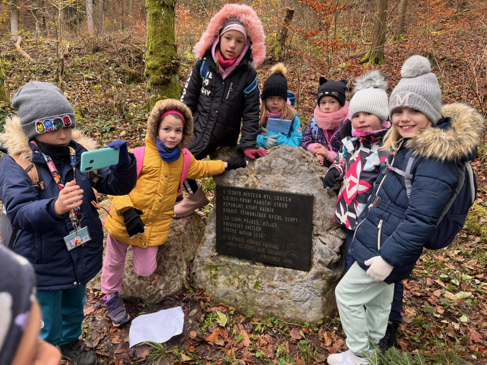 Protože se blíží stoleté výročí založení tradice Vánočního stromu v republice, vydali jsme se do míst, kde to všechno začalo. Po příjezdu do Bílovic nad Svitavou jsme se rozdělili do skupin. Každá skupina dostala mapu s vyznačenou trasou a mohli jsme vyrazit. Po cestě jsme pozorovali, zda jsou objekty, které vidíme, skutečně na mapě vyznačeny. Naučili jsme se, jak je značena hájenka, studánka i památník. Objevili jsme místo, kde spisovatel a novinář Rudolf Těsnohlídek při procházce lesem našel s kamarádem malou opuštěnou holčičku. Vyslechli jsme si její příběh a vydali se ještě po zelené turistické značce hledat další místo - to, kde byl skácen první vánoční strom. Po cestě zpět nechyběly hry a běhání, po kterých už se všichni těšili na zpáteční cestu vlakem. Děkujeme všem, kteří nás na výpravu doprovodili!