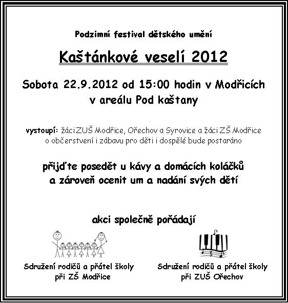 Festival šikovných dětí z Modřic a blízkého okolí - Kaštánkové veselí 2012 - se bude konat v sobotu 22. září 2012 od 15.00 hod v areálu Pod Kaštany.