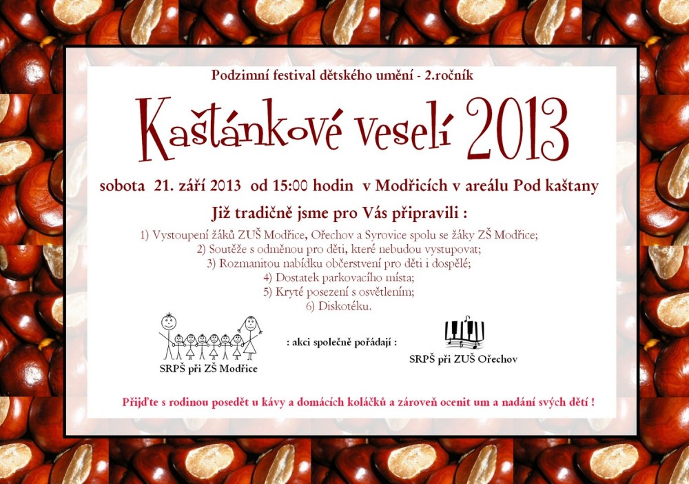 21. 9. 2013 Pozor! Z důvodu nepříznivého výhledu počasí a velké nemocnosti dětí je akce přemístěna do vestibulu ZŠ Benešova. 12 / 8 / 2013 hmili