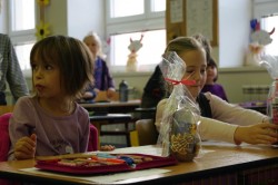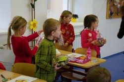 Maminky ze SRPŠ mnoho večerů pekly a zdobily perníčky, nakupovaly další dobroty a hračky a nakonec to všechno zabalily, aby byl Mikuláš připraven. Podle nadšených úsměvů na dětských tvářičkách se vše výborně povedlo, což je patrné i na fotkách níže.